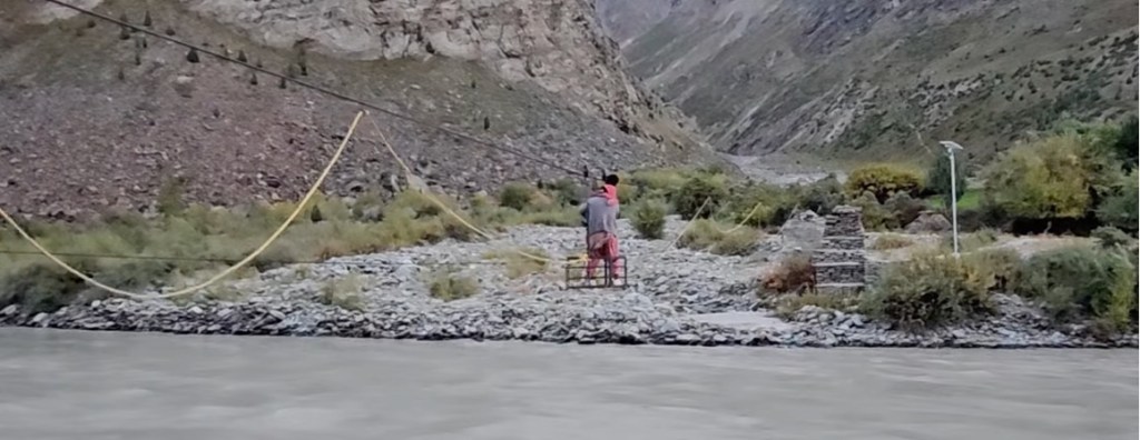 The last stretch after lunch was a bit of a strain, as always. But we reached Jispa in good time and were happy to note that this was another nice homestay on the banks of the very pretty Bhaga river. Again with access to all the amenities, we were starting to be spoiled. There were quite a few fancy homestays and swiss tents in Jispa, and it seems to be a stopover for the motorized tourists too. That evening we strolled down to the banks of the river, and were witness to the self-powered ropeway system that the locals use to cross over to their homes on the other bank. Mrs. B got to ride along with one of the village ladies.