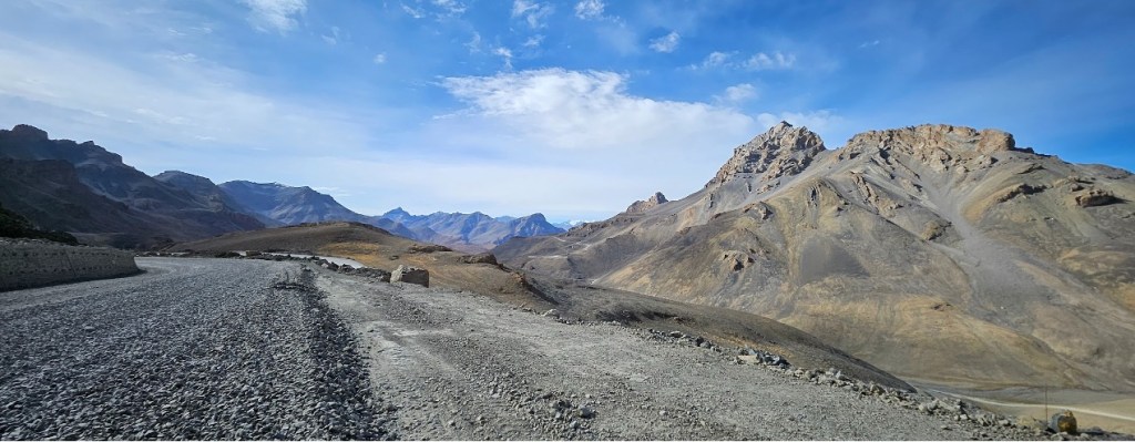 After a good night’s rest here, we headed out to Jispa. The initial stretch is largely downhill with amazing views. The landscape starts to change with a dry barren beauty about it. After about 20KM, we stopped for some tea and coffee, and then the day’s climbs started that took us through Keylong. This always get me thinking that cycling mimics life. When you have your downs, the ups eventually follow. The only difference being that the ups are fun in life, but it’s only the diehard cyclist who looks forward to the ups in cycling.